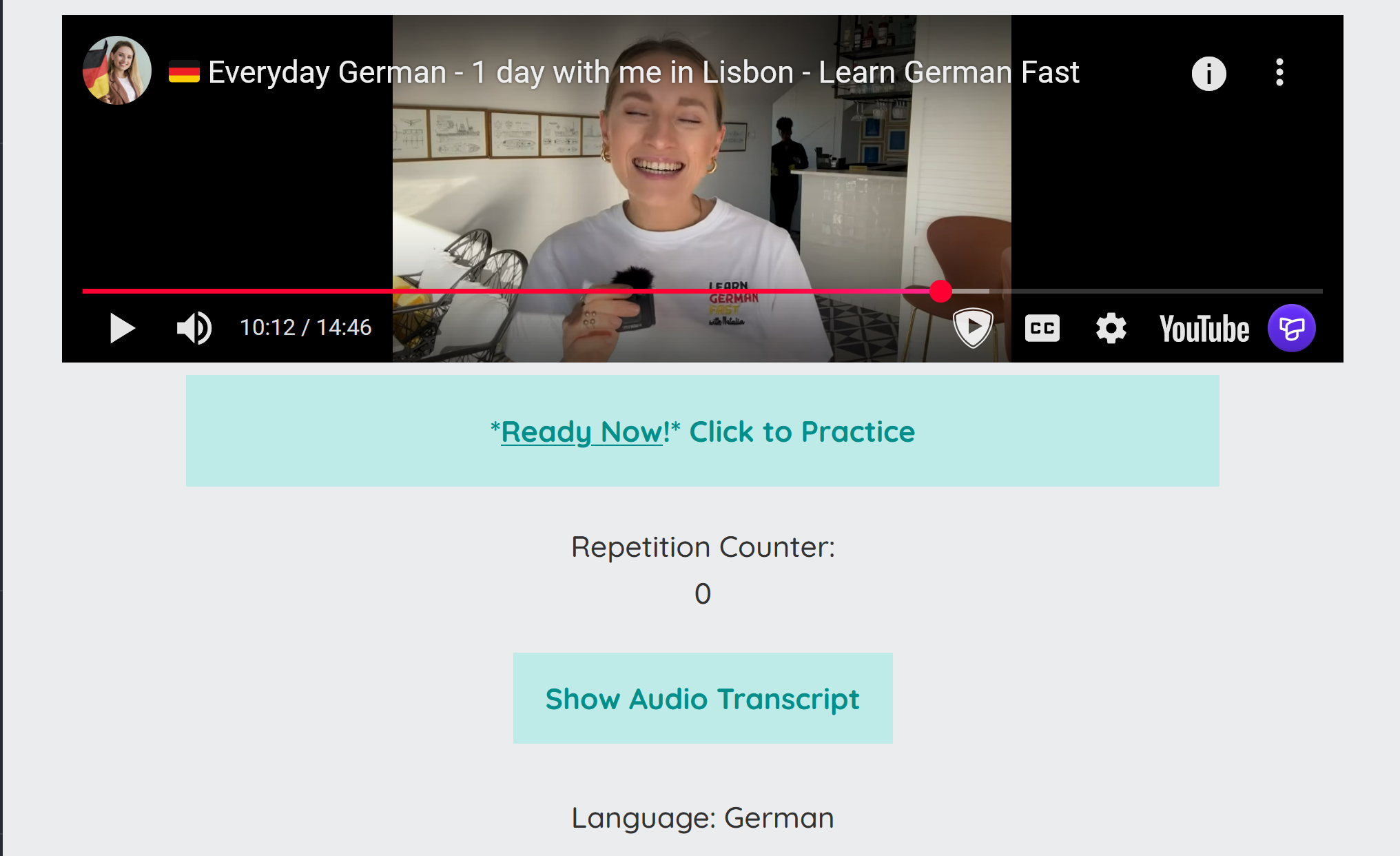 After you select a clip you want to practice, you will see the original video it comes from. When you press “Ready Now,” the clip will start playing on a loop. For the first few loops, just listen to the sentence, focusing on the native speaker’s flow and pronunciation.