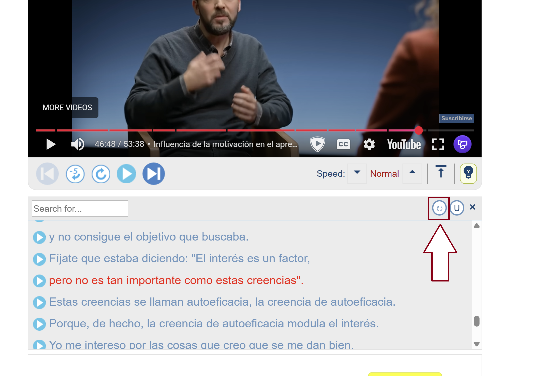 Once you have Trancy installed, you will see a little purple “T” appear in the bottom right corner of any supported videos. For shadowing, it’s best to use comprehensible input videos made for Spanish learners. Some great channels for this are Andrea la Mexicana, Spanish After Hours, Dreaming Spanish, Español con Ali, Mexican Spanish here, Clases con Clau, Spanish a la chilena, and Español con Juan. I recommend picking whether you want to speak European Spanish or Latin American Spanish, and primarily focus on shadowing speakers from that region!