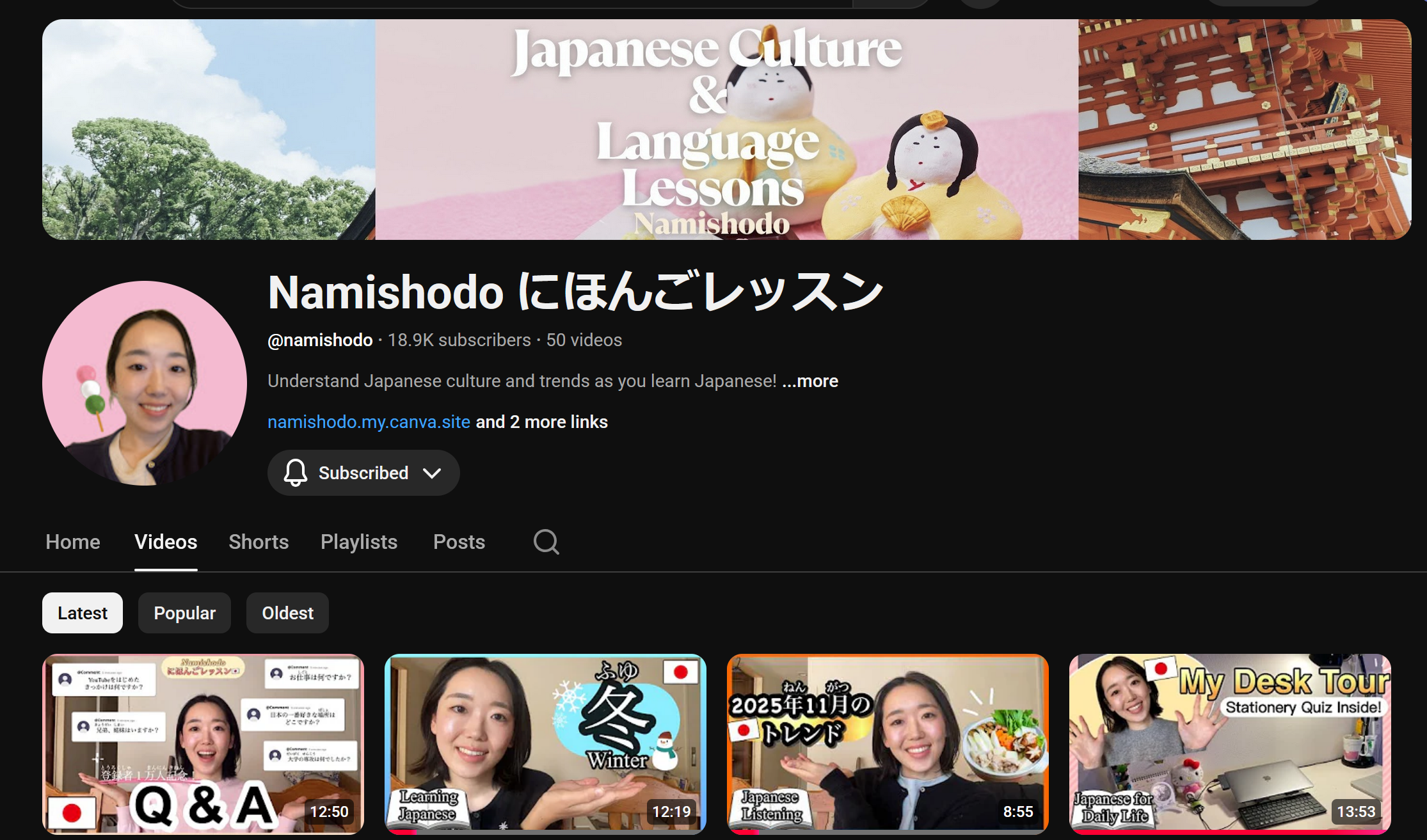 Namishodo makes videos entirely in Japanese for Japanese learners. Her videos are cute and relaxing as she discusses her daily life and Japanese culture.