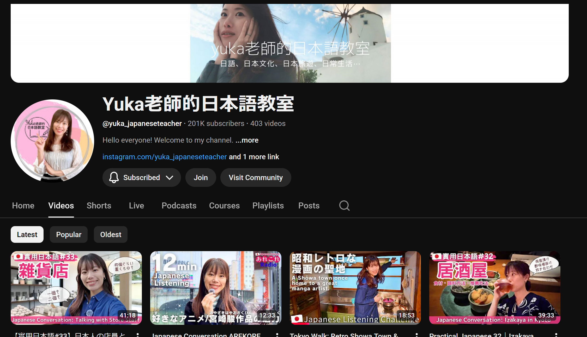 Yuka is another Japanese teacher who makes videos about her life and Japanese culture!