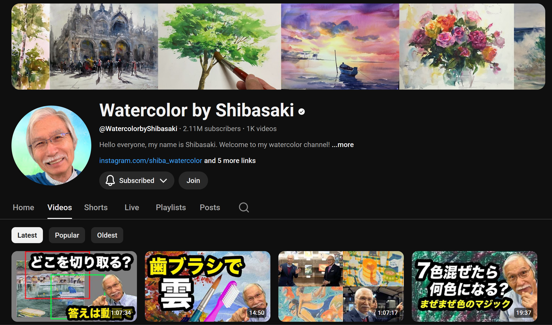 This is a great channel for watching relaxing watercolor videos and painting challenges while listening to Japanese. Shibasaki has a lovely disposition, and his videos are a joy to watch!
